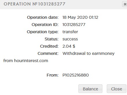 Comment: Withdrawal to earnmoney from hourinterest.com